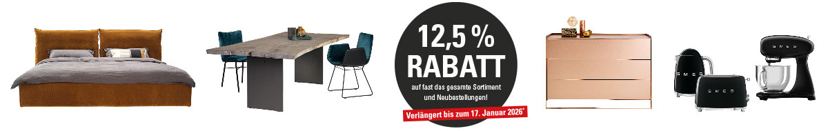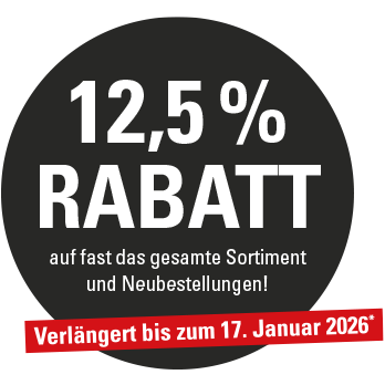 Bis zum 17. Januar 2026 erhalten Sie auf fast das gesamte Sortiment und Neubestellungen 12,5 % Rabatt*.