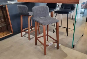 Freifrau - 4x Barhocker Leya Stoff weiß / Leder schwarz - LP 5.784,- EUR