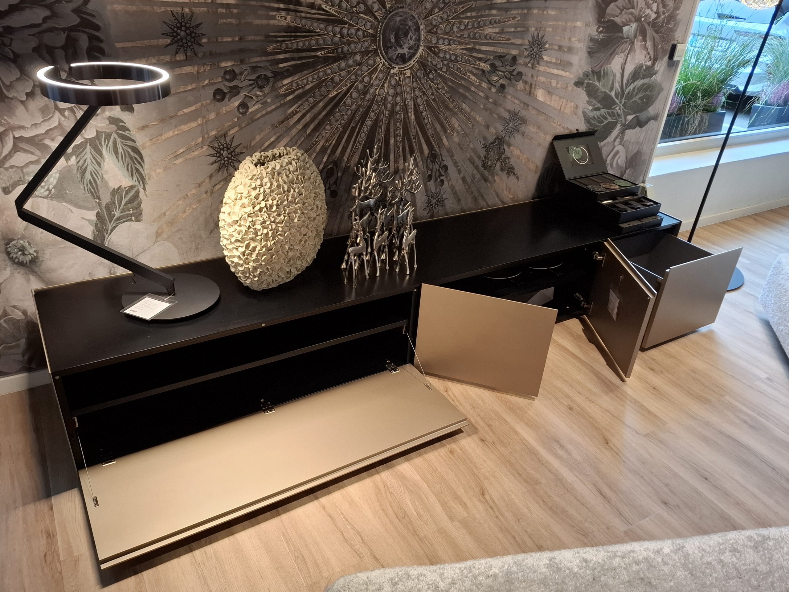 Einzelstück aus unserer Ausstellung, Zwischenverkauf vorbehalten. Leichte, warentypische Gebrauchsspuren können durch die Nutzung in unserer Ausstellung auftreten. Aus diesem Grund können Sie jederzeit, die Angebote bei uns im Haus besichtigen. Das Angebot versteht sich ohne die Dekoration (Vasen, Blumen, Bilder etc.).
