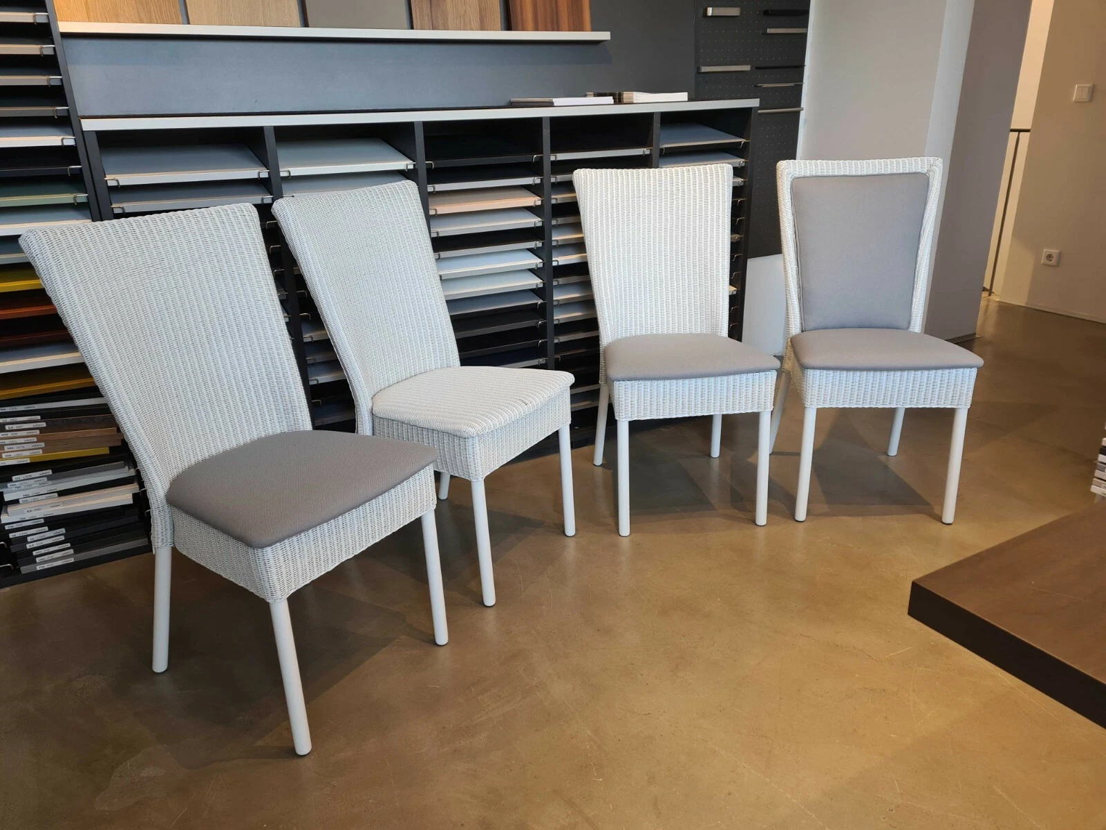unterschiedliche Geflechtstühle aus einem Programm