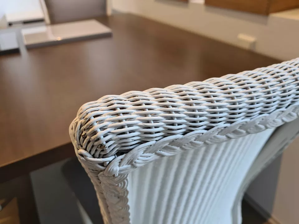 Lloyd Loom – 4 Geflechtstühle weiß unterschiediche Ausf. – LP 5.500,- EUR