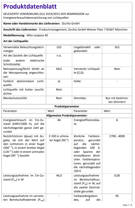 Occhio – Mito sospeso 40 up – LP 3.598 ,- EUR